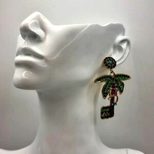 womens girls vacation summer tropical rhinestone bling dangle earrings island beach leaf leaves women's teenager's girl's teens teenager girl's summer vacation brunch girls night date night out cruise ladies