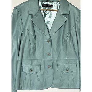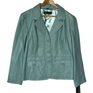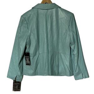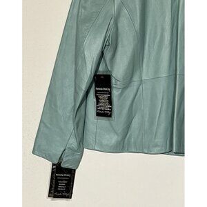 New PAMELA MCCOY Mint Green Genuine Leather Buttons Moto Jacket Blazer