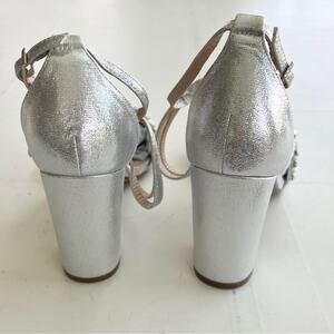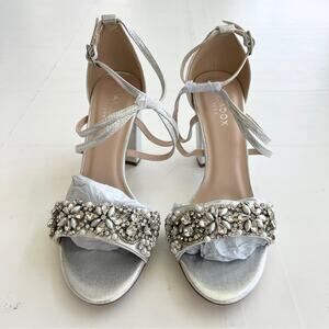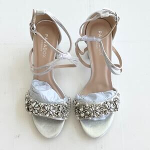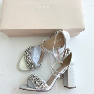 New PARADOX LONDON Hira Sandal Silver Shimmer Embellished Heels Women’s SIZE 7