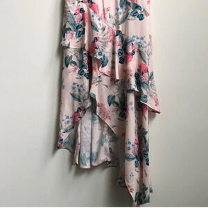 New PARKER FLORAL ASYMMETRICAL RUFFLE DRESS meadow ruffle handkerchief fairy 90s