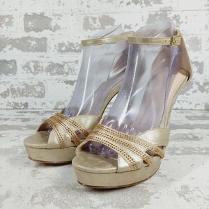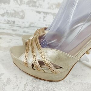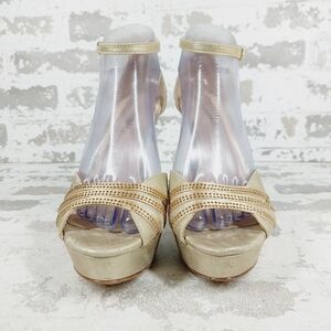 New PELLE MODA Olwyn Ankle Strap Platform Sandal In Gold E985