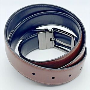 New PERRY ELLIS Reversible Leather Belt Men's 36x90 Black/Brown Professor Preppy