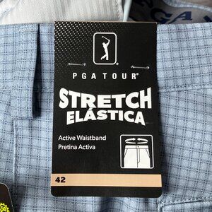 New PGA Tour Men's 42 Blue Grid Check Plaid Stretch Active Waistband Golf Short