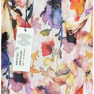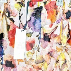 New! PIAZZA DEL TEMPIO Made In Italy Linen Ruffle Trim Floral Wrap Midi Skirt