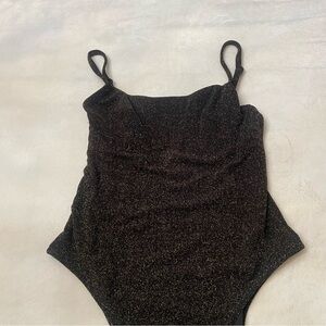 PINK Victoria's Secret Black The Wave Monowire One Piece Swimsuit Size Large