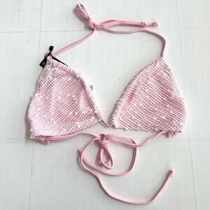 New PLT Textured Overlay Triangle Bikini Top Sequin Women’s SIZE 8