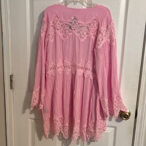 New POL Candy Pink Lace Trim Tunic Top-Medium