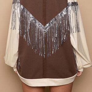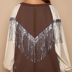 New POL Clothing Endless love Sequin Fringe Sweatshirt Pullover Brown Oversized