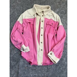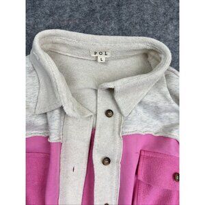 New POL Clothing Women's Gauze Knit Button Front Shacket Oversized Large Pink L