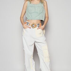 New POL Contrasting Distressed Relaxed Fit Pants Boho Pants Lightweight Jeans
