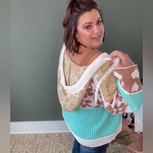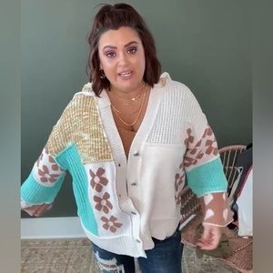 New POL cardigan sweater in matte chenille and super soft teddy bear knit. Colorblock design with colors and different prints, including hearts and daisies. Size Large and fits oversized like most POL pieces. This cardi is super hard to find and such a special piece.