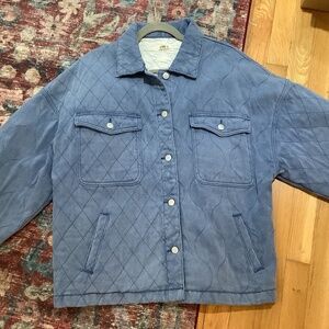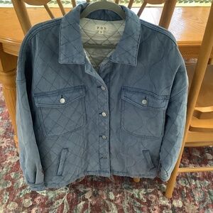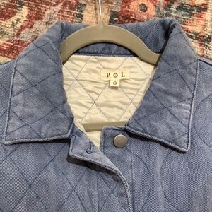 New POL Quilted Denim Oversized Jacket with unique mixed quilted patterns. Size Small but see pictures with measurements as most POL runs larger. PTP about 23 inches. Nice weight for fall. 🍁 Smoke free home.