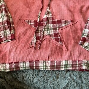 New POL Star Patch Plaid Flannel Long Sleeve Hooded Top Hoodie Size Large