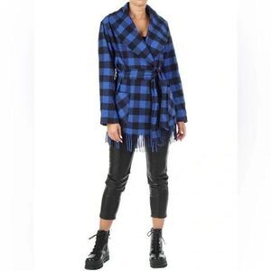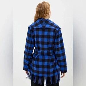 New POLO RALPH LAUREN Checked Fringe-Edge Belted Jacket Size Large