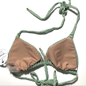 New PQ Swim Pilyq Detail Sliding Triangle Bikini Top Small Aquarius Green.