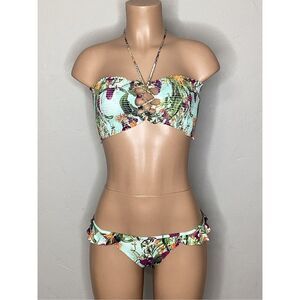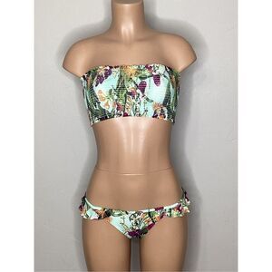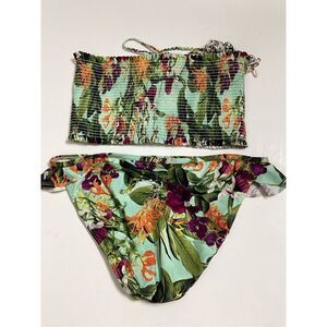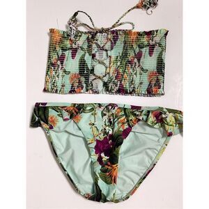 Smocked floral tube top with lace up closure that can be worn multiple ways.