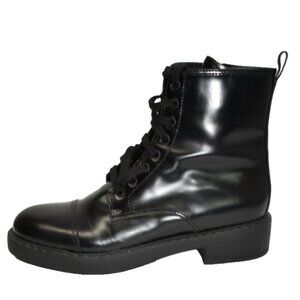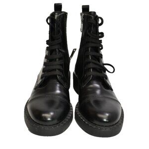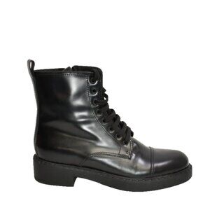 New! PRADA Women's ‘Spazzolato’ Chocolate Leather Combat Boots Black Size 40.5 10.5 US DD222B