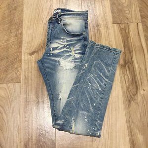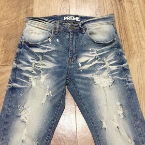 New PREME Designer Jeans 29x30.5* Men Heavily Distressed Ripped Biker Moto Denim