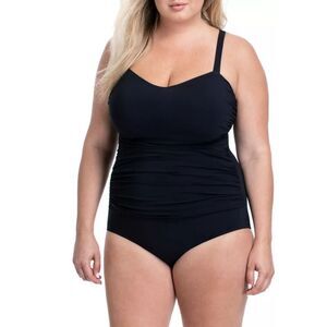 New! PROFILE BY GOTTEX Tutti Frutti Plus Size One-Piece Solid Black Swimsuit