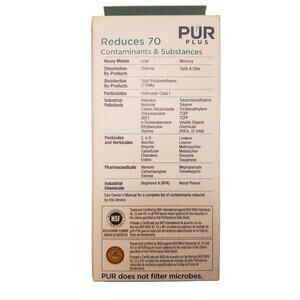 3-IN-1 POWERFUL WATER FILTRATION. PUR is the only brand certified by WQA and NSF to reduce 70 chemical & physical substances, including lead and microplastics commonly found in your drinking water.