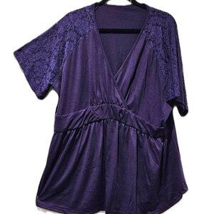 New PURPLE LACE SURPLUS BODICE PEBLUM SHORT SLEEVE ELEGANT BLOUSE 4X GOTH BOHO