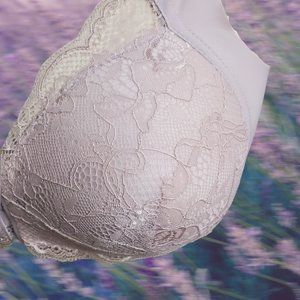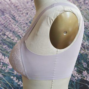 New Padded Comfort Bra - 4XL - Wireless - 3-hook Front Closure - smooth back and sides. Pale Lavender Lace