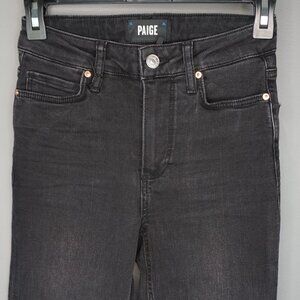 New Paige Cindy High Rise Straight Ankle Jeans in Black Willow size 23