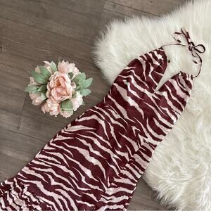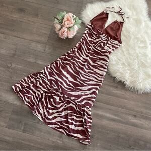 New Paige Jade Brown Zebra Print Halter Midi Slit Dress XS