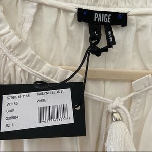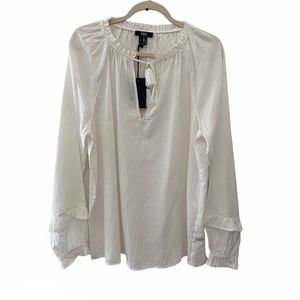New Paige Tailynn White Long Sleeve Peasent Style Boho Blouse Size Large