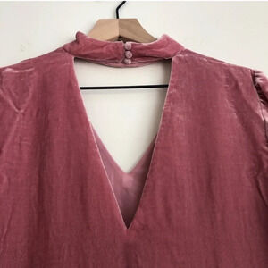 New Paige Vintage Rose Velvet Cateline Top Cutout pink crushed velvet v-neck