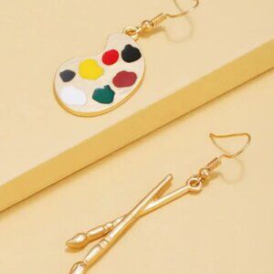 New Paint Brush and Palette 🖌️🎨Artsy Earrings Asymmetrical With Gift Box