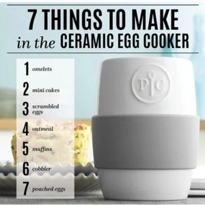 Make hot, healthy breakfasts in no time at all in the Ceramic Egg Cooker! Crack up to four eggs into the container, shake them up, and pop them in the microwave for a fast homemade breakfast. You can even add your favorite toppings for a quick omelet, poach eggs, or make instant oatmeal that won't boil over. The lid’s vent hole lets steam escape as you cook, and includes a silicone gasket to keep the lid secure.