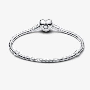 Set your heart a-flutter with this romantic version of Pandora's bestselling charm bracelet. Hand-finished with a heart-shaped clasp, this sterling silver snake chain bracelet looks stunning on its own but even better adorned with your favorite Pandora charms and clips. Layer it with contrasting Pandora chain bracelets for a chic, multi-layered look.
