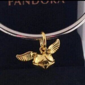New Pandora Shine Gold Harry Potter Golden Snitch Wings Pendant Charm
