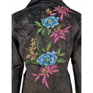 Paparazzi by Biz Black Embroidered Floral Long Coat Women’s Boho Statement Jacket Size Large