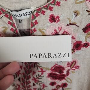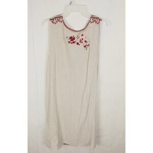 New Paparazzi tan floral embroidered linen sleeveless dress size M boho resort