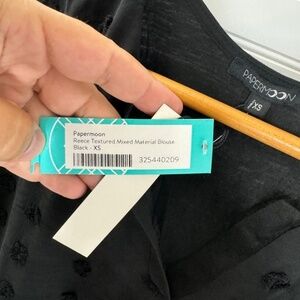 New Papermoon Reece Textured Mixed Material Blouse Black XS