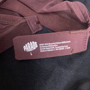 Listed is a Parade Silky Mesh Plunge Bralette in "Pony", a pretty berry purple color. Back closure, adjustable straps. Double layer mesh for a semi-sheer look.