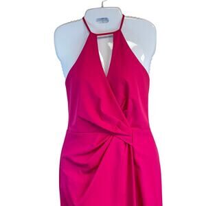 Brand New with Tags Parker Black Nola Long Dress Lipstick Pink Scuba Crepe, Sleeveless, Keyhole Halter Neck, Draped Front with High Slit, Lattice Back. Sexy, Chic and Elegant Evening Formal Gown MSRP: $378