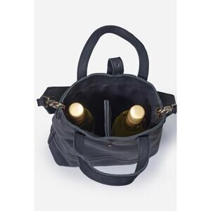 New Parker Clay Valley Wine Tote Leather Black Cylindrical Two Bottles