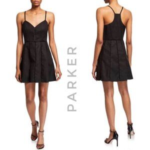 New Parker Juliet Ladder Stitch V- Neck Black Mini Dress NWT Large