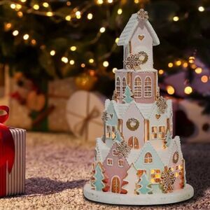Absolutely beautiful gingerbread castle in pastel pink and blue. It’s a statement piece you need in your Pinkmas!!! Lights up with LED lights! I have several in my Pinkmas decor and you absolutely won’t regret having them around!