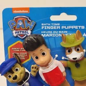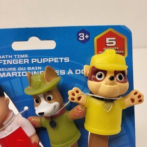 New Nickelodeon Paw Patrol bath time finger puppets by Ginsey. Total of 5 puppets. Very colorful. This item will make bath time and any time-of-day fun. "Educational and playful for kids. Bright colors and friendly faces. Easy to clean." For ages 3+.