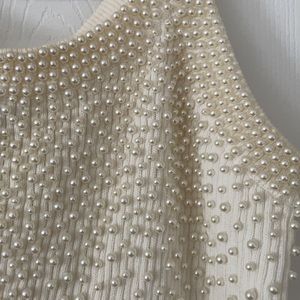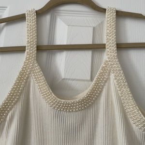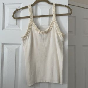 New Pearl Ribbed Knit Tank Top Ivory Small
