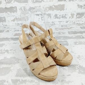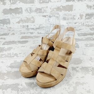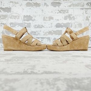 New Pelle Moda Kym Tan Suede Platform Wedge Sandals E739