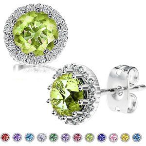 New Peridot/August Birthstone Stud Earrings Set, Copper Plated Cubic Z…
