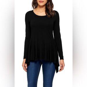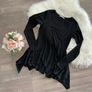 New Peruvian Connection Black Asymmetrical Swing long Sleeve Blouse