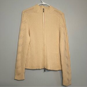 New Petite Sophisticate Womens Merino Wool Full Zip Cardigan Sz M Italian Cream