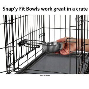 New and never used 2 pack MidWest Home for Pets Snap’y Fit water and feed bowl by MidWest Homes for Pets features a patented design that holds the bowl firmly in place but still allows the bowl to easily be removed for cleaning. The pet bowl comes with a rust resistant e-coated bracket that easily attaches to the crate or cage with two wing nuts. Because the Snap’y Fit® food and water bowl attaches to a crate’s wire mesh, it promotes healthy elevated eating and conveniently keeps the pet bowl from being knocked over (no-tip design) by pets and pet parents alike, eliminating potential mealtime messes. 10 oz. (1.25 cups). A great food bowl or water bowl for a variety of pets including dogs, cats, birds, and many other small animals. The stainless-steel pet bowl is dishwasher safe for easy cleaning and does not hold unpleasant odors or germs like a plastic food bowl.