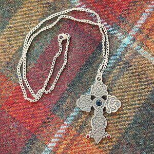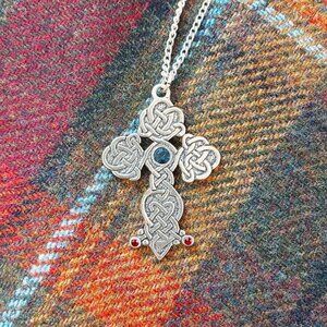 New Pewter Celtic Knot Cross Embellished Necklace (Made in UK)